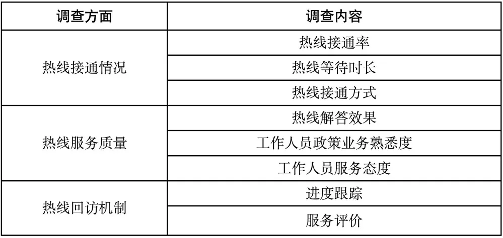 表1 咨詢熱線調查內容