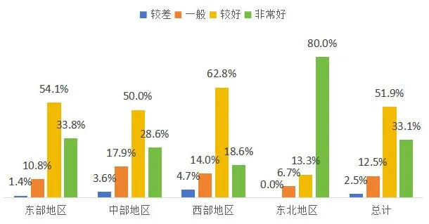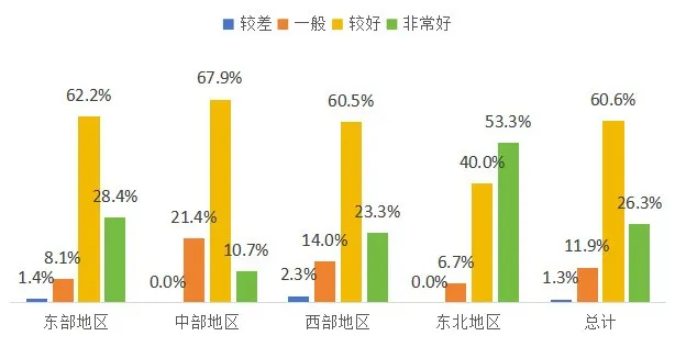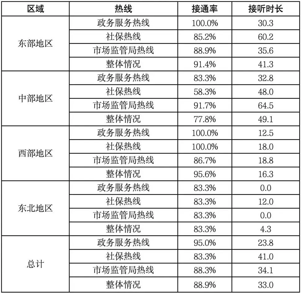 工作人員整體服務態度較好,政策熟悉度較高。總體看,超過85%的熱線服務態度較好,對咨詢的問題能正確回應,耐心解答,對政策和業務流程講解清晰。相較而言,東部、東北地區工作人員服務態度、政策熟悉度較好。仍存在部分咨詢熱線接聽人員沒耐心、不清楚辦理流程等情況。