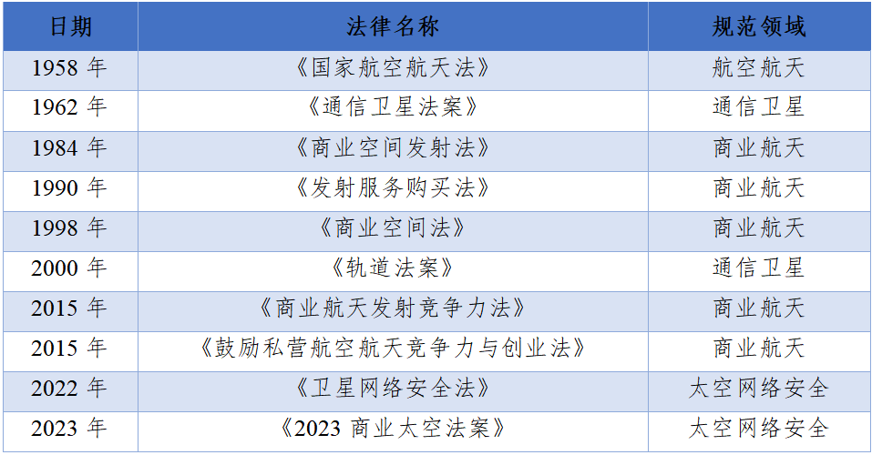 表1 美國(guó)衛(wèi)星通信領(lǐng)域部分法律