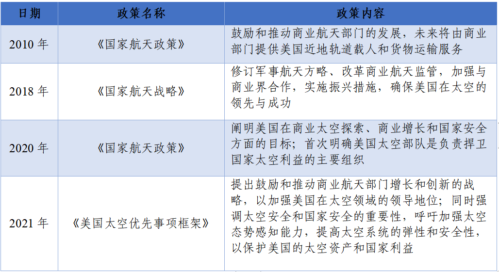 表2 美國(guó)衛(wèi)星通信領(lǐng)域部分政策