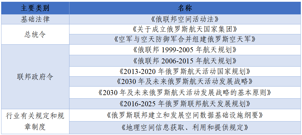 表4 俄羅斯衛(wèi)星通信領(lǐng)域部分政策法規(guī)