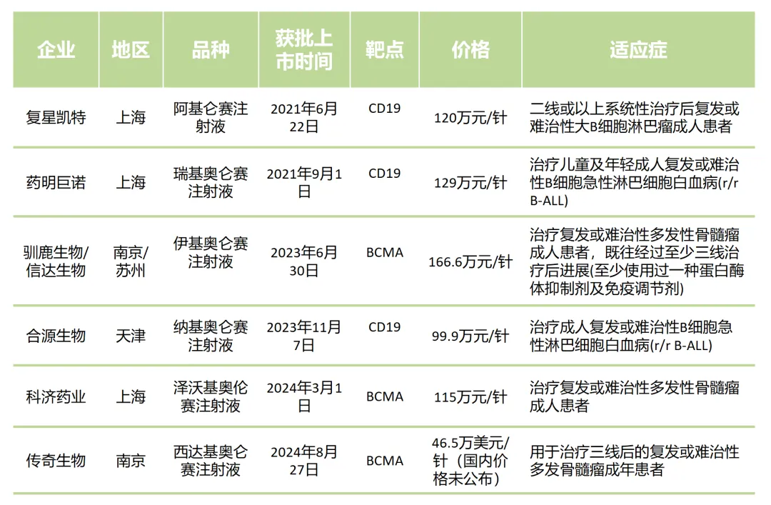 表2 運用合成生物技術的國內獲批的CAR-T產品