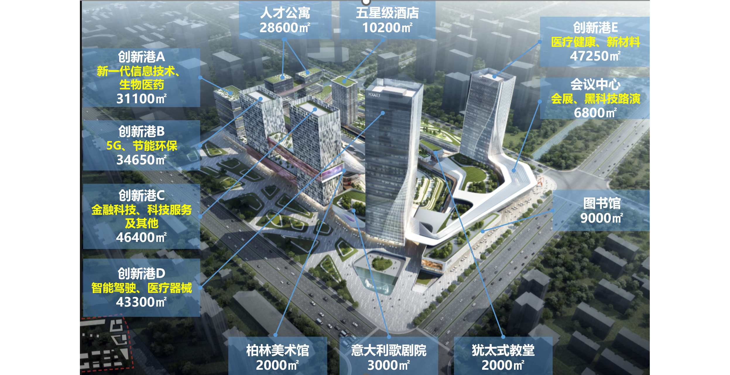 分析項目地塊的區域功能定位、區位條件、創新資源、服務配套環境等因素,結合中關村集團強大的聚創新資源與市場化平臺優勢,提出建設的中關村國際創新港策劃方案,構建“一核兩翼”產業體系,即以科技服務業為科技創新核、以新一代信息技術為信息技術創新翼、以醫藥健康產業為生命健康創新翼,強化高端商務、創新孵化、展覽展示、人才公寓等配套服務產業,形成北京國際創新生態新地標。
